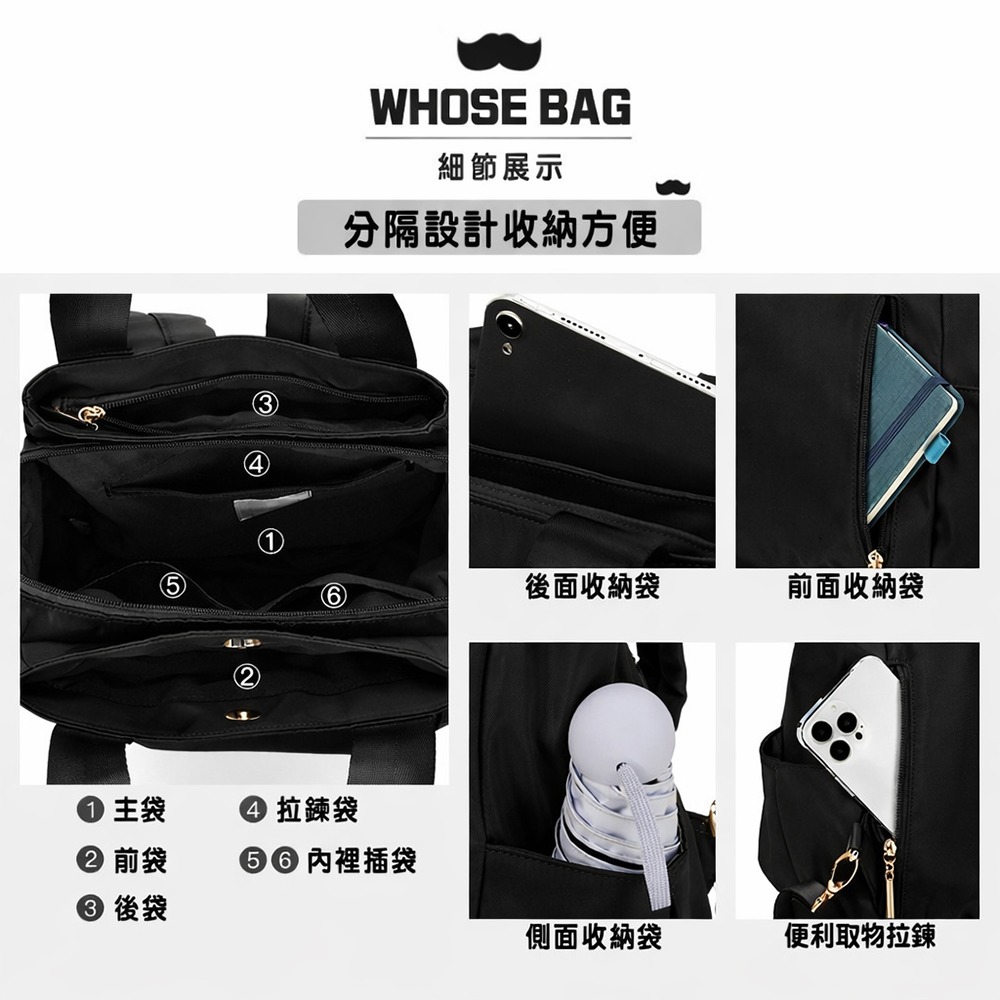 【WHOSE BAG】NO.WBM042 防潑水多隔層後背包,以日系簡約風格為設計靈感,選用輕盈耐用的防潑水牛津布材質,即使遇到雨天或戶外出行,也能安心使用。